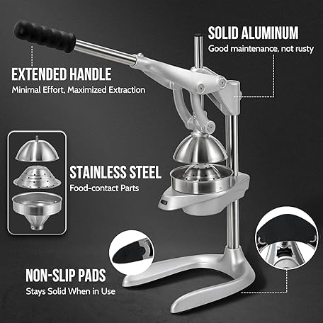 Thông tin sản phẩm Manual Juicer, Sopito Heavy-Duty Effortless Orange Juicer Squeezer Safety Countertop Stainless Steel Hand Press Juicer for Citrus Lemon Lime Grapefruit, Easy to Clean