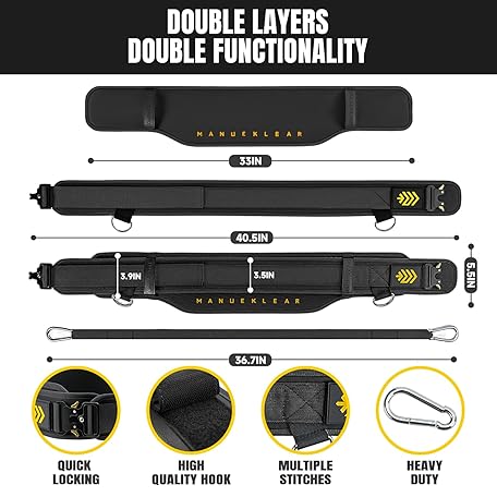 Thông tin sản phẩm MANUEKLEAR 2-in-1 Weightlifting Belt & Dip Belt with 36.7 IN Rope, Double-Layer Weight Lifting Belts, Powerlifting Gym Weighted Belt for Pull Up Squat
