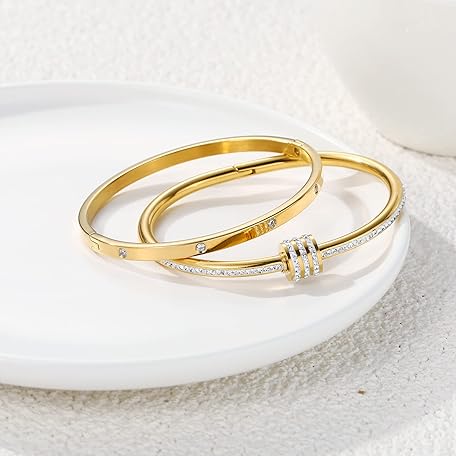 Sản phẩm MAOCEN Women's Stainless Steel Bracelet Gold Plated Cuff Bangle With Cube Zircon Hinge Jewelry oval Bangle Witness the Gift of Love đang được bán với giá ưu đãi là $16.3391 tại nước Mỹ.