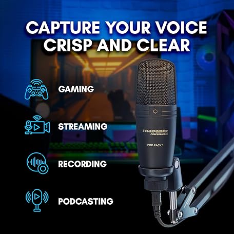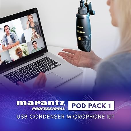 Thông tin sản phẩm Marantz Professional Pod Pack 1 USB Condenser Microphone Kit for Gaming, Streaming and Podcasting with Built-In Audio Interface, Adjustable Boom Arm and Desk Clamp, Plug-and-Play