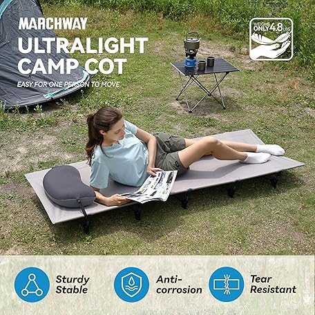 Thông tin sản phẩm MARCHWAY Ultralight Folding Tent Camping Cot Bed, Portable Compact for Outdoor Travel, Base Camp, Hiking, Mountaineering, Lightweight Backpacking (Grey)