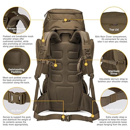 Thông tin sản phẩm Mardingtop 60L Military Internal Frame Backpack for Hiking,Camping,Hunting,Rucksack Backpack with Rain Cover