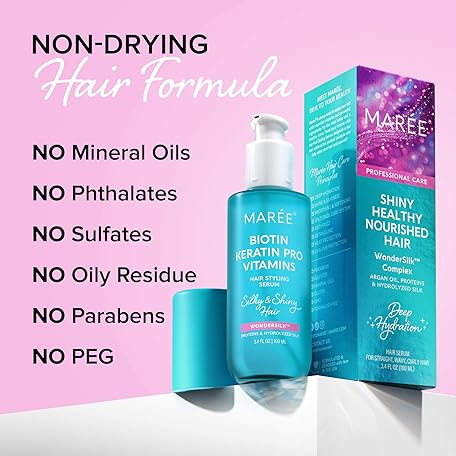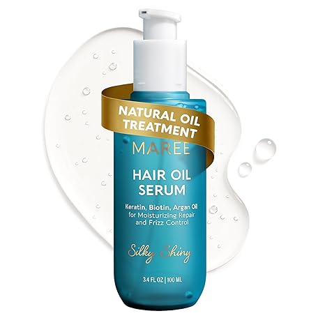Thông tin sản phẩm MAREE Hair Oil for Frizzy Hair with Argan Oil, Keratin & Biotin – Hair Serum for Dry and Curly Hair Gloss – Frizz Control Hair Care Products for Women – Aceite Para el Cabello – Keratin Hair Treatment