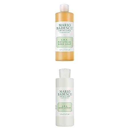 Mario Badescu AHA Botanical Body Wash & AHA Body Lotion Kit | Gentle Exfoliating Body Soap & Lotion with Glycolic Acid for Brighter, Softer Skin | Moisturizing & Clarifying Formula, 2 Piece Set
