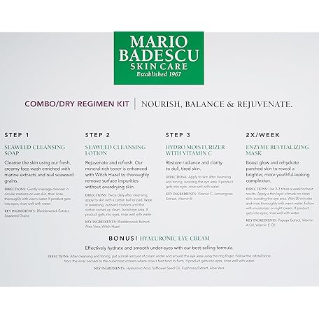 Thông tin sản phẩm Mario Badescu Combo/Dry Regimen 5 Piece Kit, Skincare Gift Set Includes Seaweed Cleansing Soap, Seaweed Cleansing Lotion, Hydro Moisturizer, Enzyme Revitalizing Mask, and Hyaluronic Eye Cream