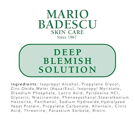 Thông tin sản phẩm Mario Badescu Deep Blemish Solution, Spot Treatment for Face with Potent Zinc Oxide, Niacinamide and B Vitamins Overnight Treatment Serum that Targets Large Blemishes Under the Skin