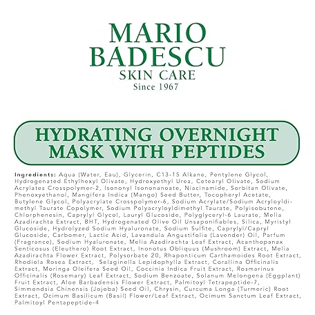 Sản phẩm Mario Badescu Hydrating Overnight Mask with Peptides for All Skin Types | Anti-Aging Sleep Mask that Hydrates | Formulated with Palmitoyl Pentapeptide-4 and Palmitoyl Tetrapeptide-7| 2 fl OZ đang được bán với giá ưu đãi là $26.16 tại nước Mỹ.