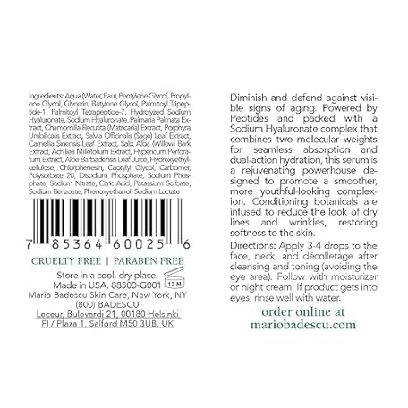 Thông tin sản phẩm Mario Badescu Super Peptide Serum for Face, Reduces the Look of Fine Lines & Wrinkles, Skincare with Sodium Hyaluronate & Peptides, Hydrating, Anti Aging Facial Serum for All Skin Types, 1 Fl Oz