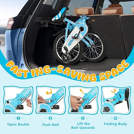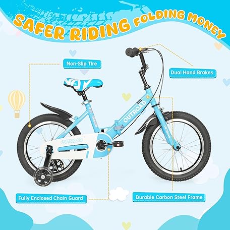 Thông tin sản phẩm MarKnig 14/16/18 Inch Folding Kids Bike with Training Wheels, Gifts for Girl&Boy Age 3-10 Years, Toddler Bike with Dual Brakes for Beginners, Multi-Color