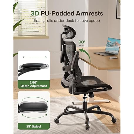 Marsail Ergonomic Mesh Office Chair High Back Home Office Desk Chair with Adaptive Lumbar Support, 2D Headrest, 3D Flip-Up Armrests, Height Adjustable and Rocking Tilt for Home Office and Gaming