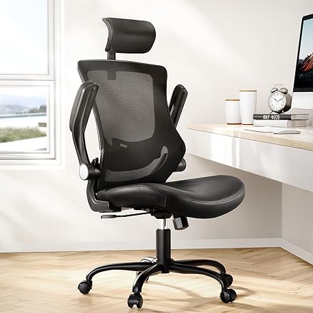 Thông tin sản phẩm Marsail Office Chair Ergonomic Desk Chair, 360°Swivel Mesh Back Wide Computer Chair PU Leather Criss Cross Chair,Adjustable Lumbar Support & Flip-up Armrests,Adjustable Height Executive Task Chair