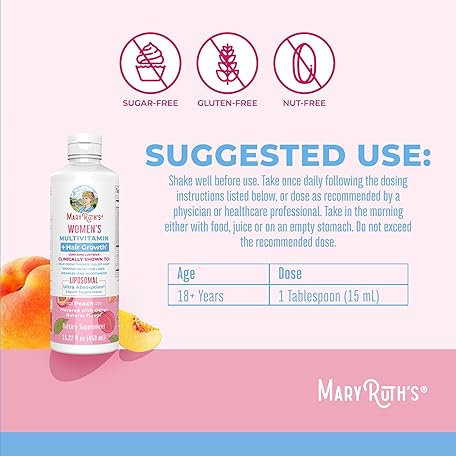 Thông tin sản phẩm MaryRuth Organics Women's Multivitamin + Lustriva Hair Growth Liposomal | Biotin 10000mcg | Clinically Tested for Thicker, Fuller Hair, Improved Facial Fine Lines & Wrinkles | Ages 18+ | 15.22 Fl Oz