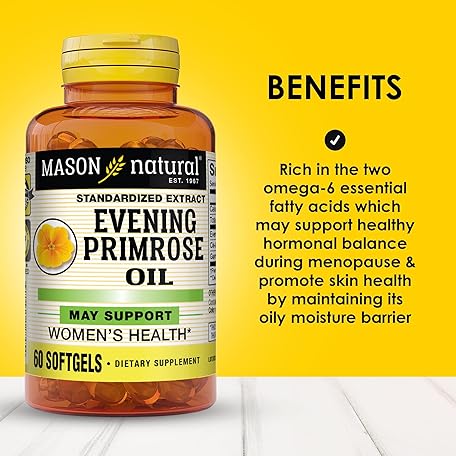 Thông tin sản phẩm MASON NATURAL Evening Primrose Oil Softgels, 3 Month Supply, May Support Women’s Healh, 3 Pack (1 Month per Bottle)