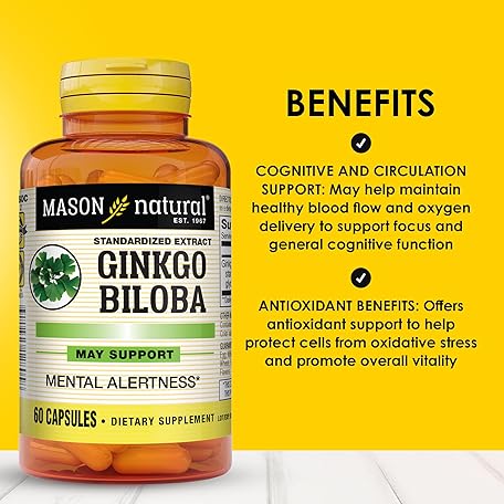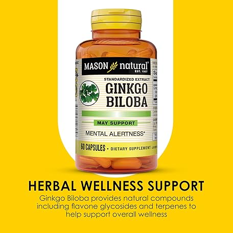 Thông tin sản phẩm MASON NATURAL Ginkgo Biloba, Supports Brain Function & Mental Alertness, Herbal Supplement, 60 Capsules