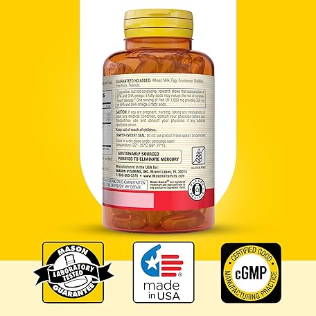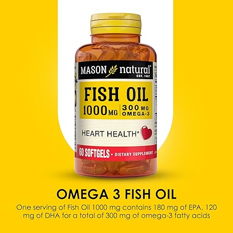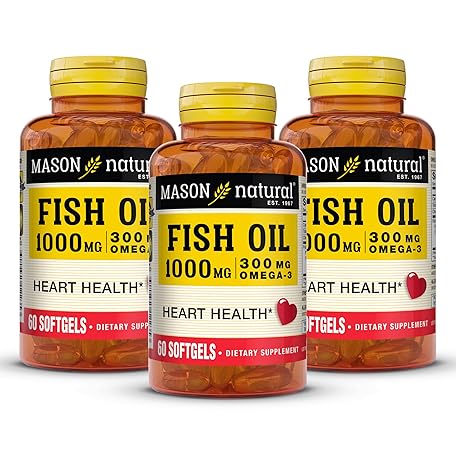 Thông tin sản phẩm MASON NATURAL Omega,3 Fish Oil, 180,Day Supply, 1000mg with EPA and DHA for Joint Support, 60 Softgel Pills (3 Pack)