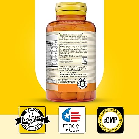 Sản phẩm MASON NATURAL Vitatrum Complete Multivitamin,Multimineral, Supports Normal Immune Health, Bones, Heart, Eyes, & Energy, 150 Caplets đang được bán với giá ưu đãi là $13.6141 tại nước Mỹ.