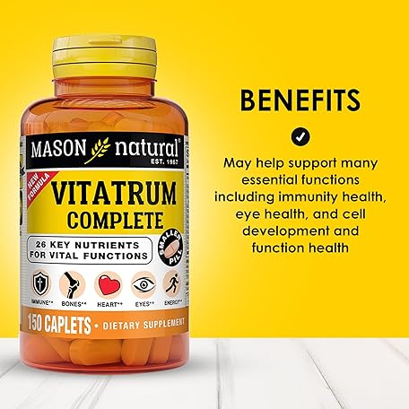 Thương hiệu MASON NATURAL là cái tên nổi tiếng được rất nhiều khách hàng trên thế giới chọn lựa. Với kiểu dáng đẹp mắt, sang trọng, sản phẩm MASON NATURAL Vitatrum Complete Multivitamin,Multimineral, Supports Normal Immune Health, Bones, Heart, Eyes, & Energy, 150 Caplets là sự lựa chọn hoàn hảo nếu bạn đang tìm mua một món cho riêng mình.