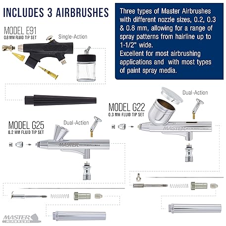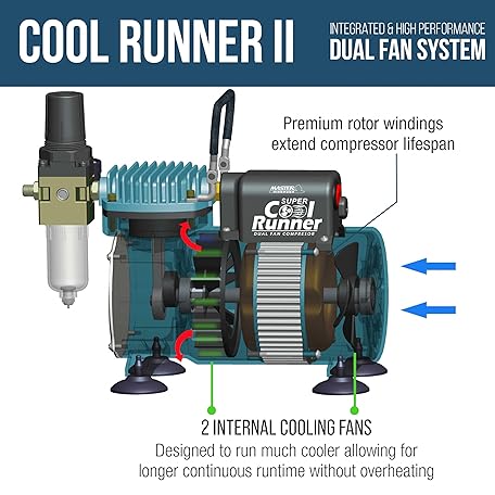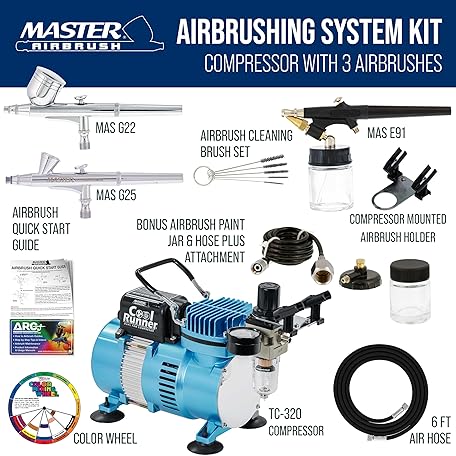 Thông tin sản phẩm Master Airbrush Cool Runner II Airbrush Kit with Dual Fan Air Compressor, 3 Airbrushes, Cleaning Brushes, Holder, Color Mixing Wheel & How-To Air Brush Manual, Gravity & Siphon Feed