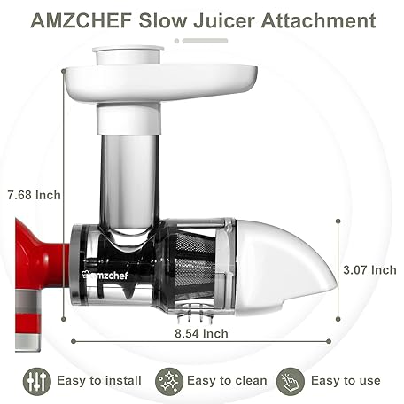 Masticating Juicer Attachment for KitchenAid All Models Stand Mixers, AMZCHEF Masticating Juicer, Slow Juicers Attachment for All Kitchen Aid Mixers, Cold Press Juicers Parts (Ivoy White)