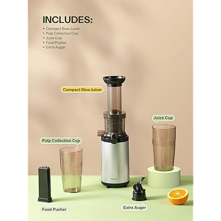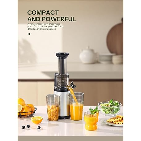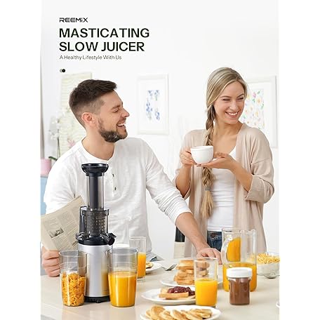 Thông tin sản phẩm Masticating Juicer Machines, Reemix Cold Press juicer Machine Compact & Small Size, Juice Extractor, Nutrient and Vitamin Dense, BPA-Free Tritan, Easy to Clean (Silver)