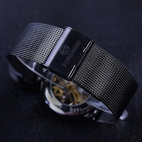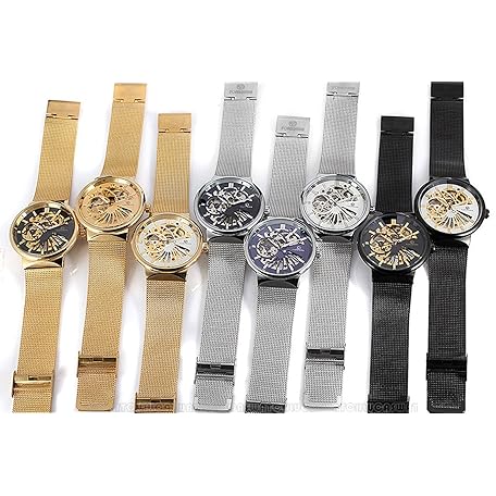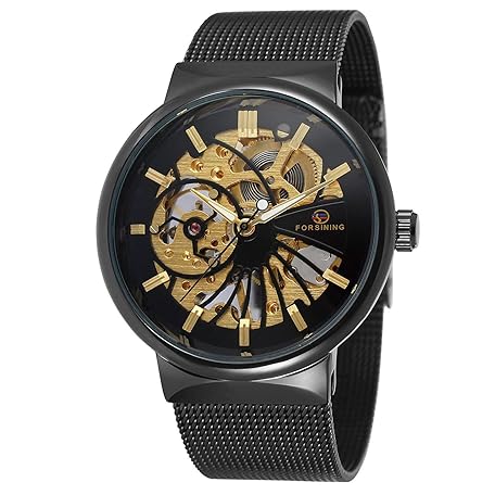 • MASTOP Mens Unique Skeleton Watch Mechanical Stainless Steel Mesh Band Waterproof Luminous Wrist Watch