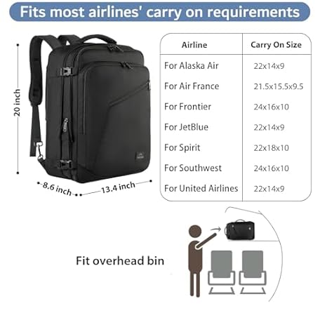 Thông tin sản phẩm MATEIN 45L Travel Backpack, Large Carry on Backpack for Men Women, Water Resistant Lightweight Expandable Daypack, Business Weekender Backpacks, Gifts for People who Travel, Black