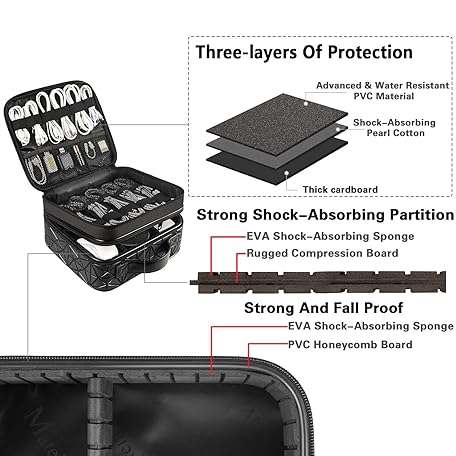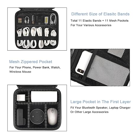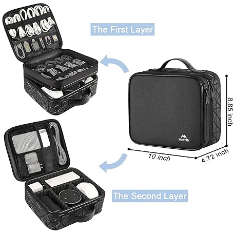Thông tin sản phẩm MATEIN Cable Organizer Bag, Waterproof Travel Electronic Storage, Shockproof Portable Double Layer Tech Bags Carrying Case for Cord, Earbuds, Charger, SD Card, DJ Gifts, Black
