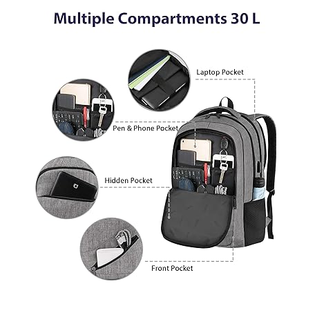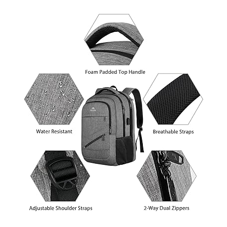 Thông tin sản phẩm MATEIN Travel Laptop Backpack, 17 Inch Work TSA Approved Carry on Backpack, Large Computer Business Bag for Men Women with USB Port and Trolley Sleeve, College School Rucksack Book Bag, Grey