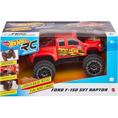 Thông tin sản phẩm Mattel Hot Wheels RC Red Ford F-150, Full-Function Remote-Control Toy Truck, Large Wheels & High-Performance Engine, 2.4 GHz with Range of 65ft