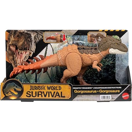 Mattel Jurassic World Dinosaur Figure Toy, Gigantic Thrashers Large Gorgosaurus with 2 Attack Action & Evolve Feature, Digital Play