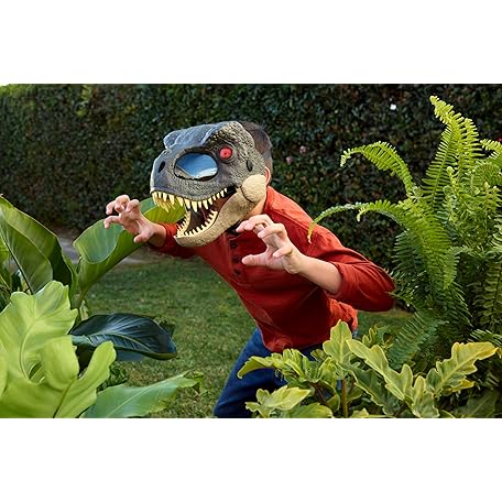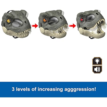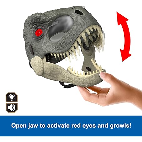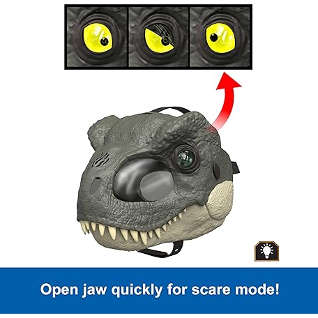 Mattel Jurassic World Rebirth T-Rex Rage N Roar Mask with LED Light Up Eyes, Blink Action with 3 Level Aggression Effect, Dinosaur Costume Headgear Toy