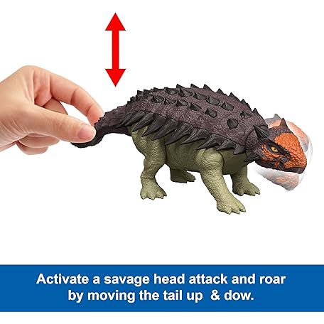 Thông tin sản phẩm Mattel Jurassic World Rebirth Wild Roar Dinosaur Toy, Posable Ankylosaurus Figure, Tail Controlled Head Butt & Multi Attack & Sound, Digital Play
