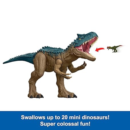 Thông tin sản phẩm Mattel Jurassic World Super Colossal Allosaurus Action Figure, Extra Large Dinosaur Can Swallow 20 Mini Figures, 38-inch Long XL Action Play Toy