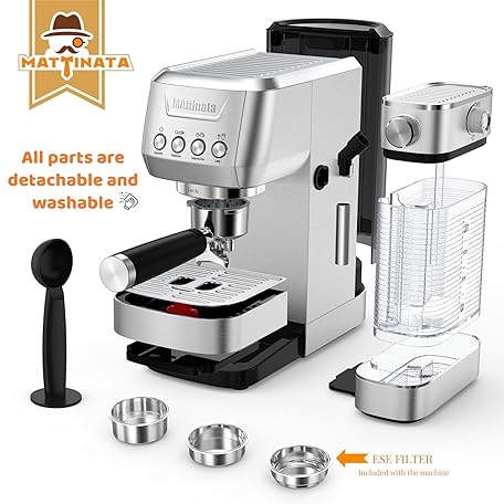 Thông tin sản phẩm MAttinata Cappuccino Machine 20 Bar, Professional Espresso Machines for Home and Office with Automatic Milk Frothering System, Barista Compact Latte Maker for Coffee Lovers, Stainless Steel-Mattino