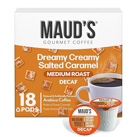 Sản phẩm Maud's Decaf Salted Caramel Flavored Coffee Pods, 18 ct, Decaffeinated Medium Roast Flavored Coffee in Recyclable Single Serve Pods – 100% Arabica Beans, Compatible with Keurig K Cups Maker đang được bán với giá ưu đãi là 0 tại nước Mỹ.
