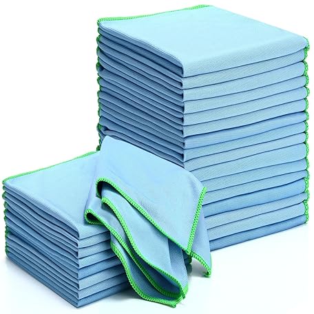 Maxcheck 24 Pack Magic Cleaning Cloth, 16 x 16 Inch Microfiber Glass Cleaning Cloths Reusable Lint Free Microfiber Towels for Kitchen Dish, Windows, Mirror, Glass, Car(Blue)