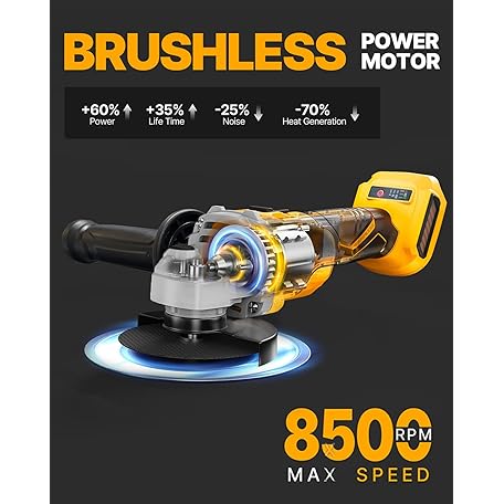 Thông tin sản phẩm MAXCULAR Angle Grinder Cordless Compatible with Makita 18V Battery,8500 RPM Brushless Power Motor,4-1/2-Inch to 5-Inch,3 Variable Speeds Power Grinder Tool for Cutting,Grinding,Polishing(Tool Only)