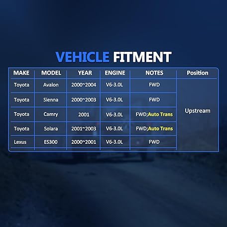 • Maxfavor 234-9021 Upstream O2 Sensor Oxygen Sensor for 2001 Toyota Camry, 2001 2002 2003 Sienna Solara, 2000 2001-2004 Toyota Avalon, for 2000-2001 Lexus ES300 3.0L V6 FWD O2 Sensor 250-54057