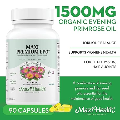 Sản phẩm Maxi Health Women's Organic Evening Primrose Oil Capsules 1500mg - EPO Gamma Linolenic Acid Supplement - PMS & Hot Flashes Menopause Relief - GLA Hormonal Acne Supplements (90 Count) đang được bán với giá ưu đãi là $32.6891 tại nước Mỹ.
