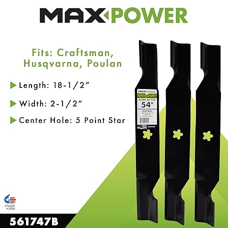 Thông tin sản phẩm MaxPower 561747B 3 Blade Set for Many 54 in. Cut Craftsman, Husqvarna, Poulan Mowers Replaces OEM #'s 187256 and 532187256