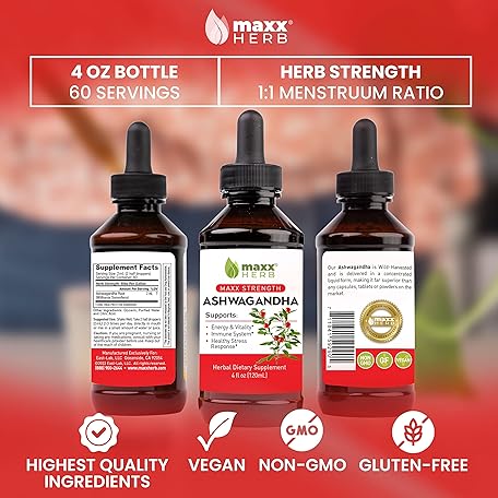 Thông tin sản phẩm Maxx Herb Ashwagandha Extract – Max Strength Liquid Tincture Absorbs Better Than Capsules or Powder - for Stamina, Memory, & Immune Support - 4 Oz Bottle (60 Servings)