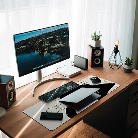 MAY FLOWER Large Gaming Mouse Pad, Full Keyboard Mat, Long Laptop Mousepad, Computer Mouse Mat for Home and Office, Anti-Slip Rubber Base, 31.5 x 11.8 Inches (Black Cat)