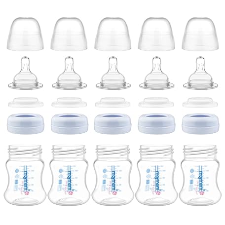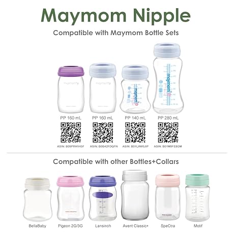 Thông tin sản phẩm Maymom Wide-Mouth Milk Storage Feeding Collection Bottle with Nipple, Dome Cap, Bottle Top, SureSeal Sealing Disk; Compatible with Spectra Pump/Motif Luna; 5 pc (4.7Oz/140mL)