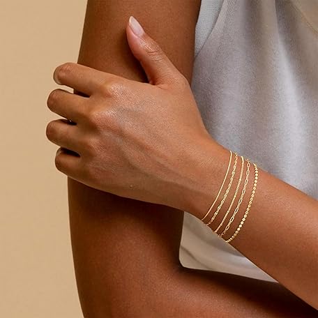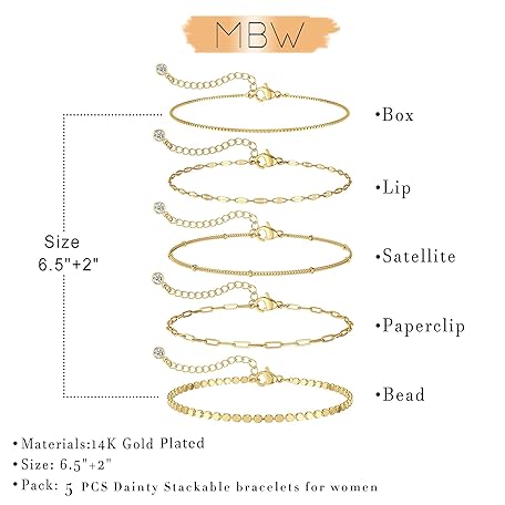 Thông tin sản phẩm MBW Gold Bracelets for Women Trendy, Dainty 14K Gold Plated Bracelet Stack Beaded Chain Bracelet Set Thin Small Cute Paperclip Bracelets Fashion Waterproof Jewelry Gift Gold Accessories for Women