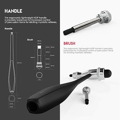 Thông tin sản phẩm MDF Instruments, Tromner Neurological Reflex Hammer with Built-in Brush for cutaneous and Superficial responses - Light - HDP Handle - Free-Parts-for-Life & Lifetime Warranty - Black (MDF555P-11)