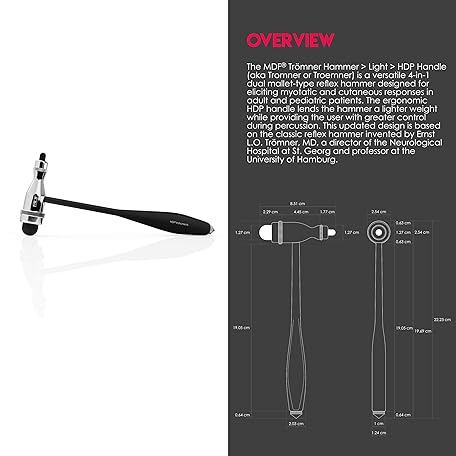 Sản phẩm MDF Instruments, Tromner Neurological Reflex Hammer with Built-in Brush for cutaneous and Superficial responses - Light - HDP Handle - Free-Parts-for-Life & Lifetime Warranty - Black (MDF555P-11) đang được bán với giá ưu đãi là $23.9691 tại nước Mỹ.