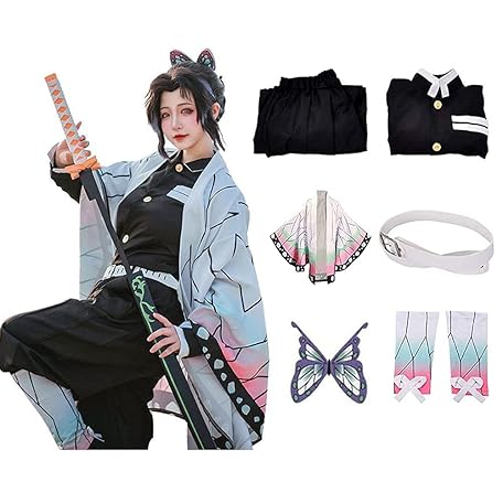 • Meaniny Anime Womens Cosplay Costumes Kochou Suit Full Set Halloween Party Outfit with Hairwear