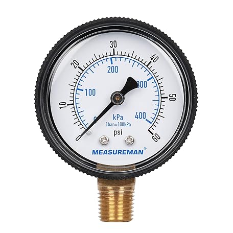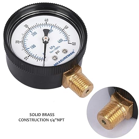 Thông tin sản phẩm MEASUREMAN 2" Swimming Pool Pressure Gauge, 1/4" NPT Lower Mount, 0-60psi/kpa, Plastic Case