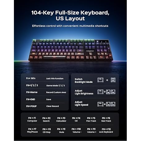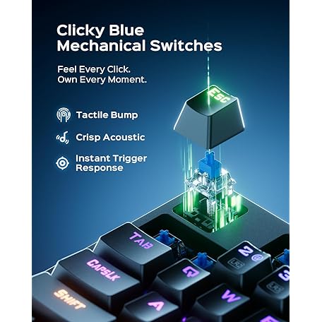 Mechanical Gaming Keyboard with Blue Switch, 104-Key Full Size RGB Backlit Wired Keyboard(11 Modes, Anti-Ghosting, Double-Shot ABS Keycaps, Lighted Computer Key-Board for PC Windows-Black