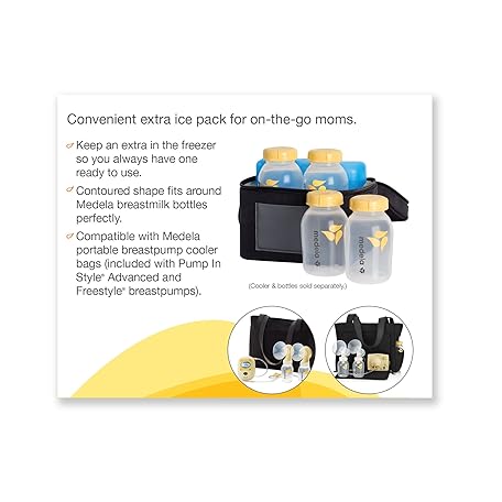 Thông tin sản phẩm Medela Ice Pack for Breast Milk Storage, Contoured Shape Designed to Fit Breastmilk Bottles, for On The Go or Traveling Moms